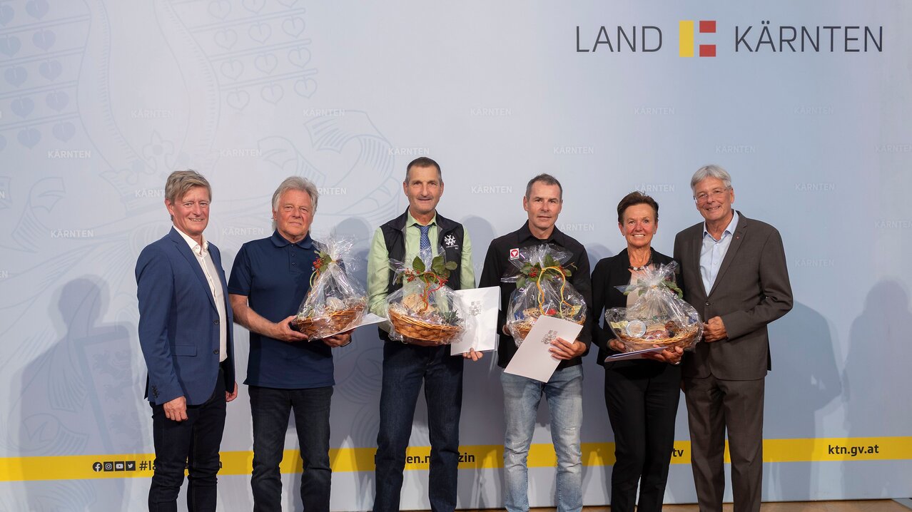 Landeshauptmann Dr. Peter Kaiser und Sportdirektor Mag. Arno Arthofer ehrten die Mitglieder der Pisten- und Loipengütesiegelkommission für ihr Ehrenamt im Sinne der Sicherheit für die Hobby-Wintersportler und den Spitzensport.